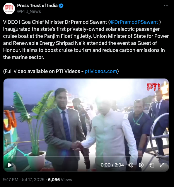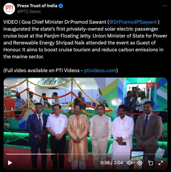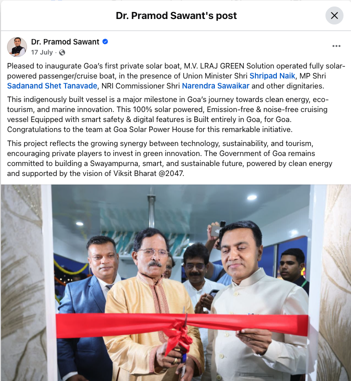 Goa’s First Private Solar-Electric Cruise Boat
